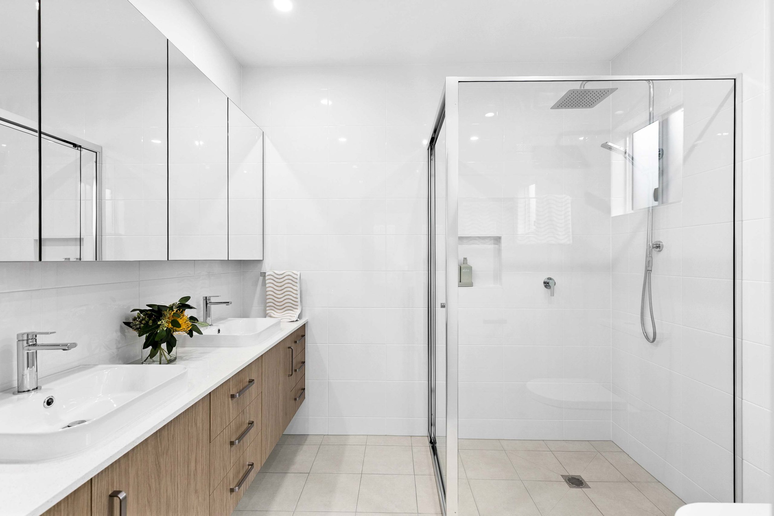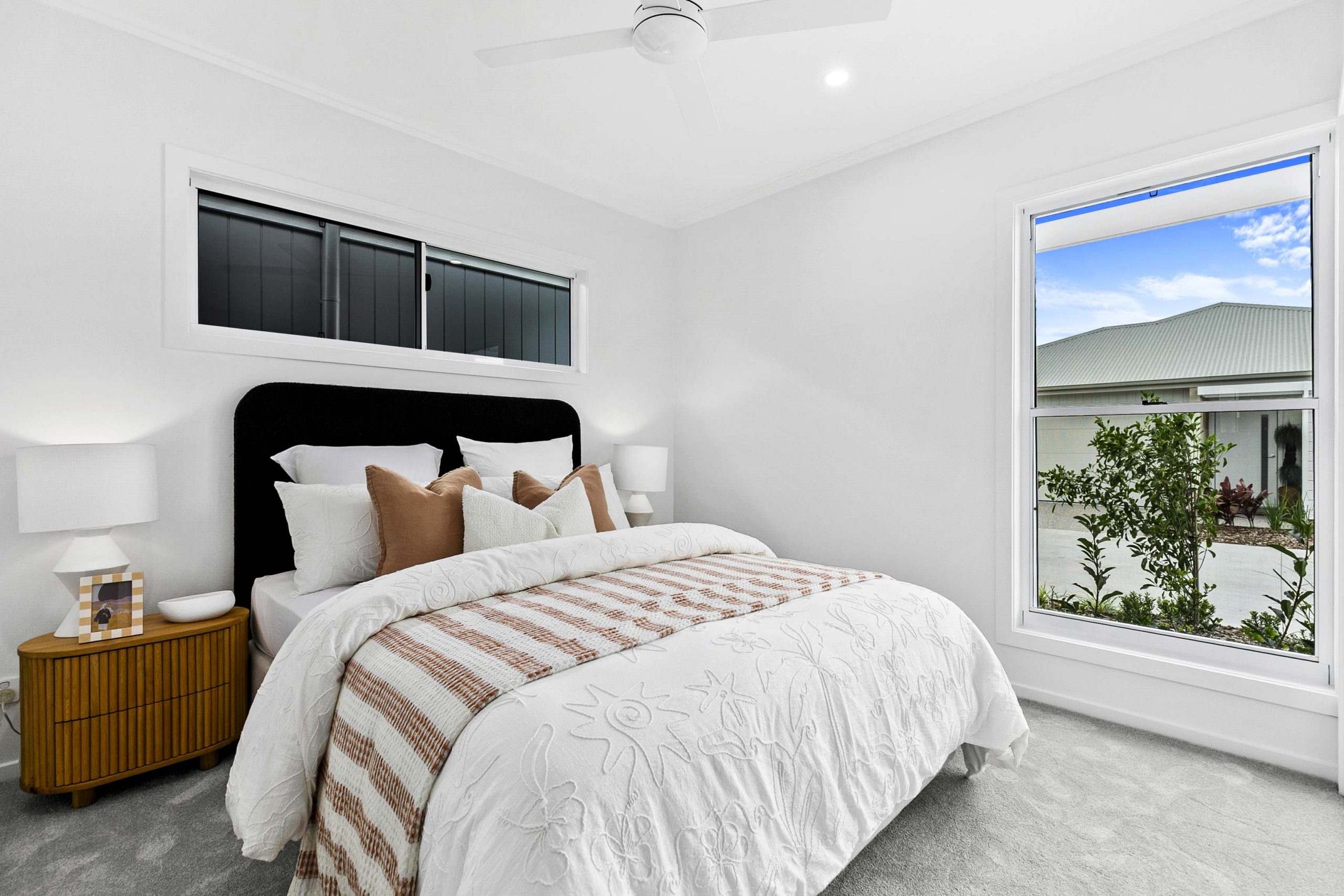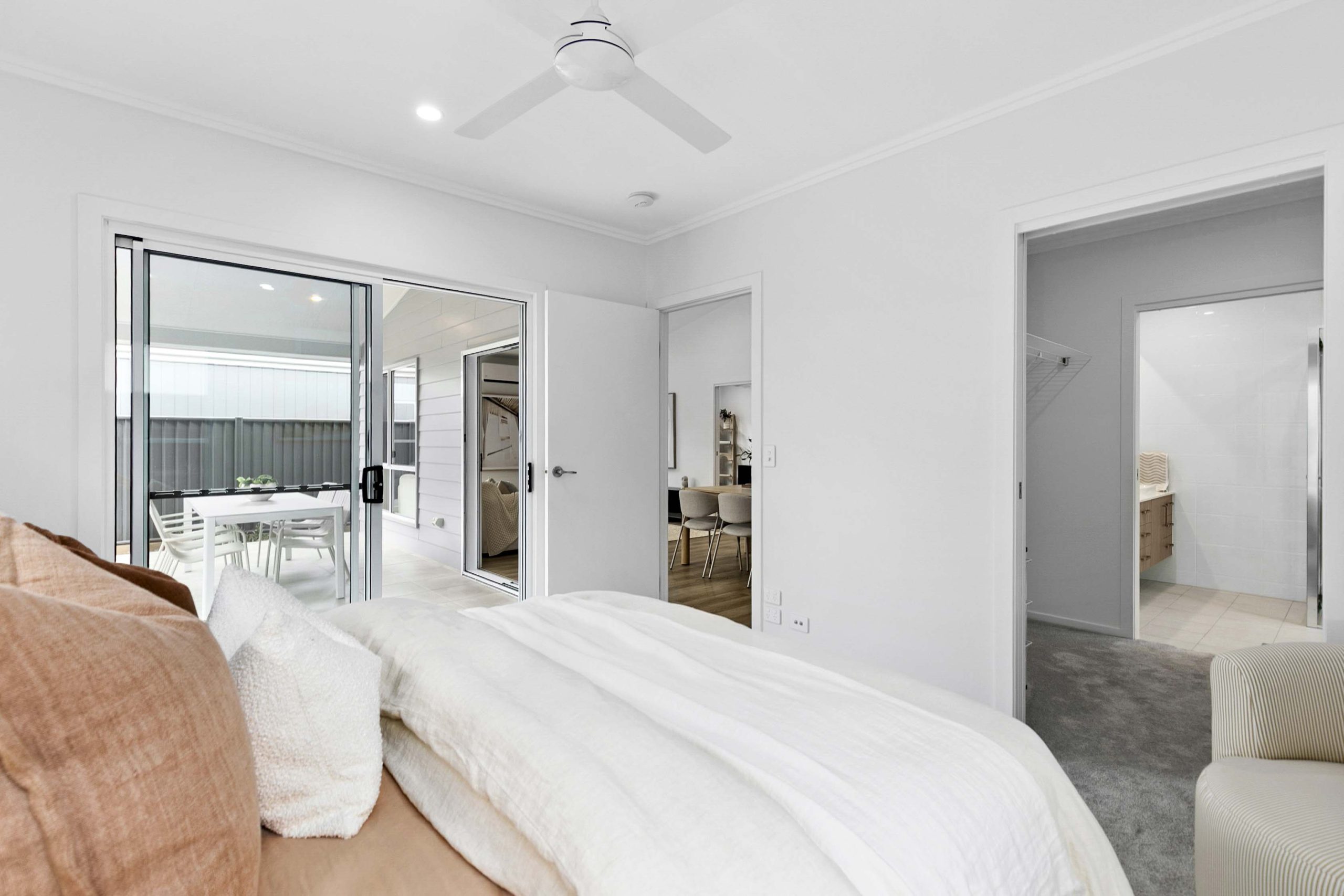 The inviting master bedroom features a double-sided walk-in robe and ensuite.